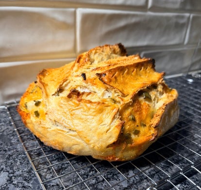 This loaf is basically sourdough with a spicy attitude. Loaded with melty cheddar and jalapeños that aren’t here to play, it’s cheesy, zippy, and dangerously snackable. Handle with care… or don’t.
